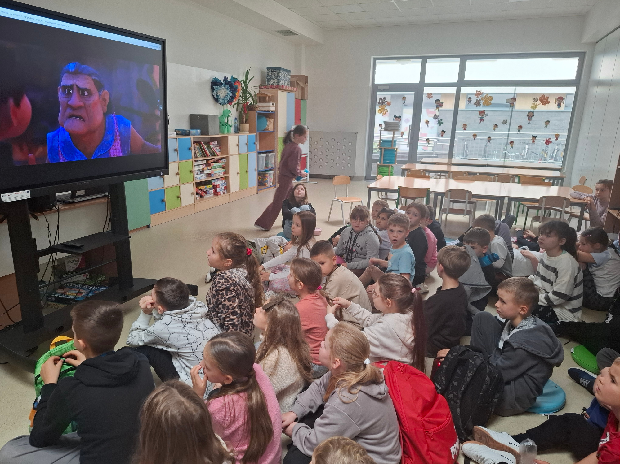 W ramach zajęć świetlicowych zorganizowano zajęcia filmowe, podczas których dzieci miały okazję obejrzeć wybrane bajki edukacyjne i rozrywkowe.