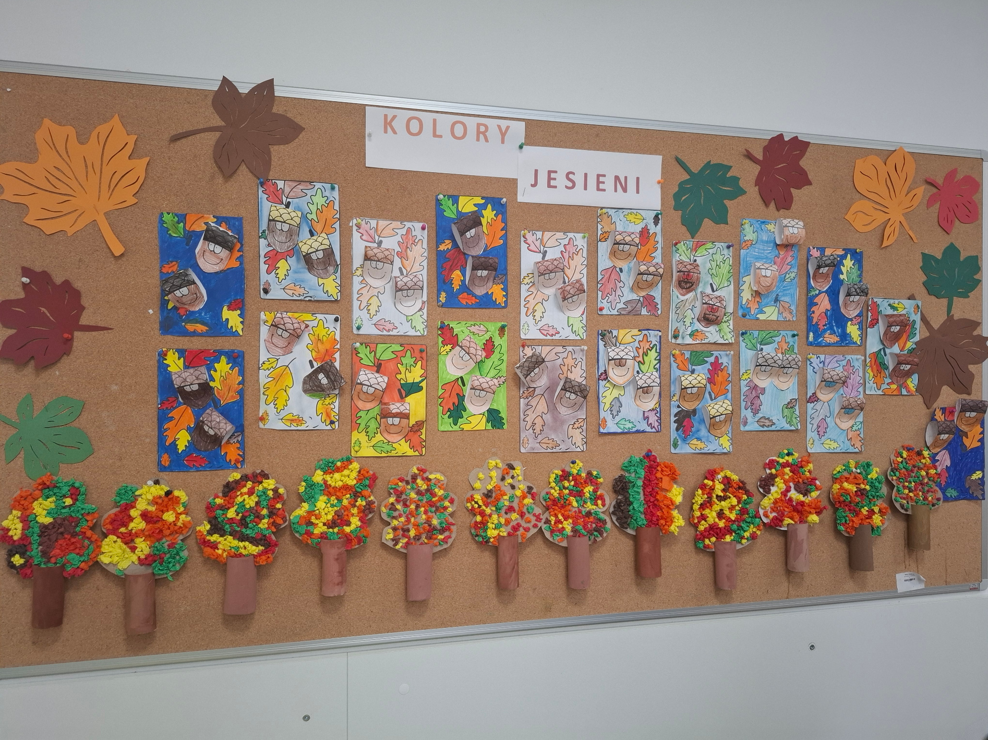 Gotowe prace ozdobiły naszą świetlicową gazetkę, tworząc jesienną galerię pełną barw i kreatywności.